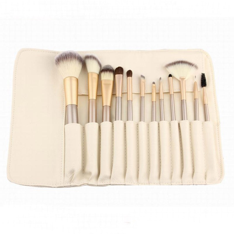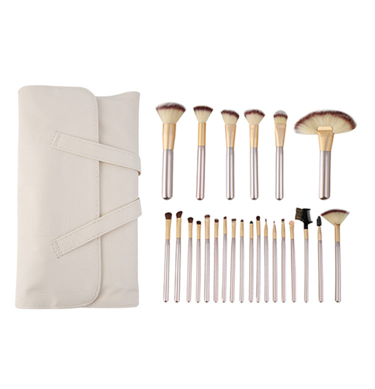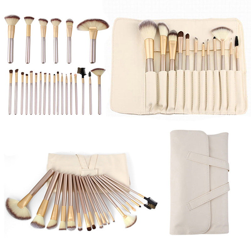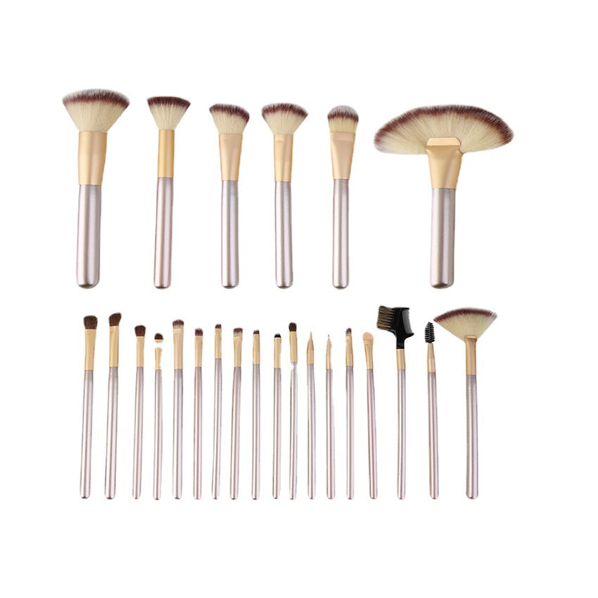 Colors: Champagne-toned wooden handles with off-white brush heads.
